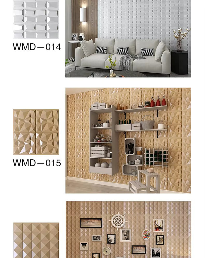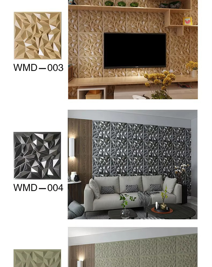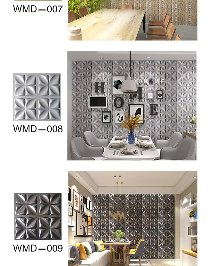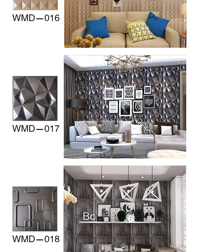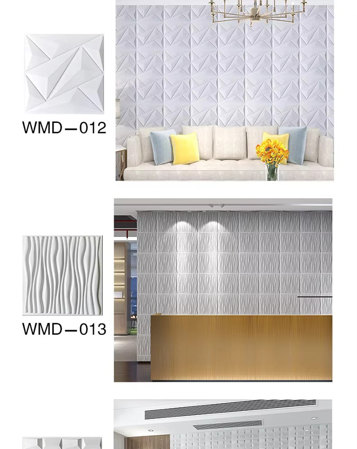 پانل های دیواری سه بعدی نوع جدیدی از مواد تزئینی هستند. از طریق پرس گرم قالب، حکاکی و فرز یا چاپ CNC، الگوهای سه بعدی روی سطح پانل ها شکل می گیرد. مواد پایه آن شامل PVC، تخته چگالی، آلیاژ آلومینیوم، الیاف بامبو و غیره است. با در نظر گرفتن PVC به عنوان مثال، مواد کامپوزیتی با مولکولی بالا در دمای بالا اکسترود می شوند و الگوهای سطح توسط قالب های فولادی دقیق فشرده می شوند، با حداقل دقت مقعر و محدب به 0.1 میلی متر می رسد. پانل های دیواری سه بعدی جلوه بصری سه بعدی دارند. از طریق اصل شکست نور و سایه، صفحه دو بعدی به یک جلوه بصری سه بعدی با حس عمق تبدیل می شود و لایه بندی بصری در زیر همان ناحیه بیش از 3 برابر افزایش می یابد.