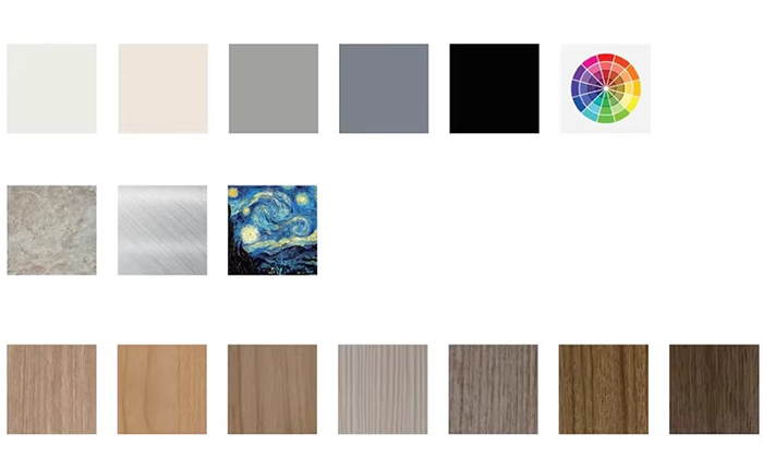 رنگهای استاندارد (خاکستری نقرهای، طلایی شامپاین، سفید عاج و غیره)، از سفارشیسازی رنگ پنتون/پنتون پشتیبانی میکنند.