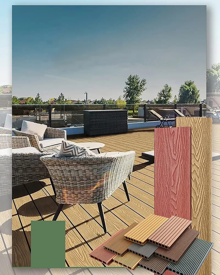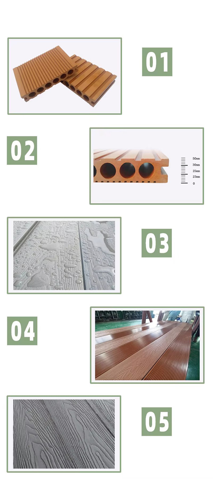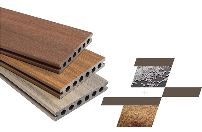 مواد: کامپوزیت الیاف چوب و ترموپلاستیک (مانند پلی اتیلن یا پلی وینیل کلراید)