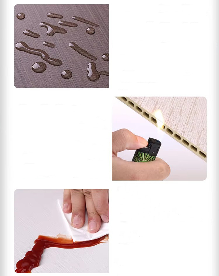 نصب آسان: وزن سبکی دارد و می توان آن را اره کرد، اره کرد، میخ کرد و سوراخ کرد. روش های نصب مختلفی وجود دارد که باعث صرفه جویی در زمان و هزینه می شود. تمیز کردن و نگهداری آسان: سطح صاف است، به راحتی با خاک لکه نمی شود و به راحتی تمیز می شود. فقط آن را با یک پارچه مرطوب پاک کنید.