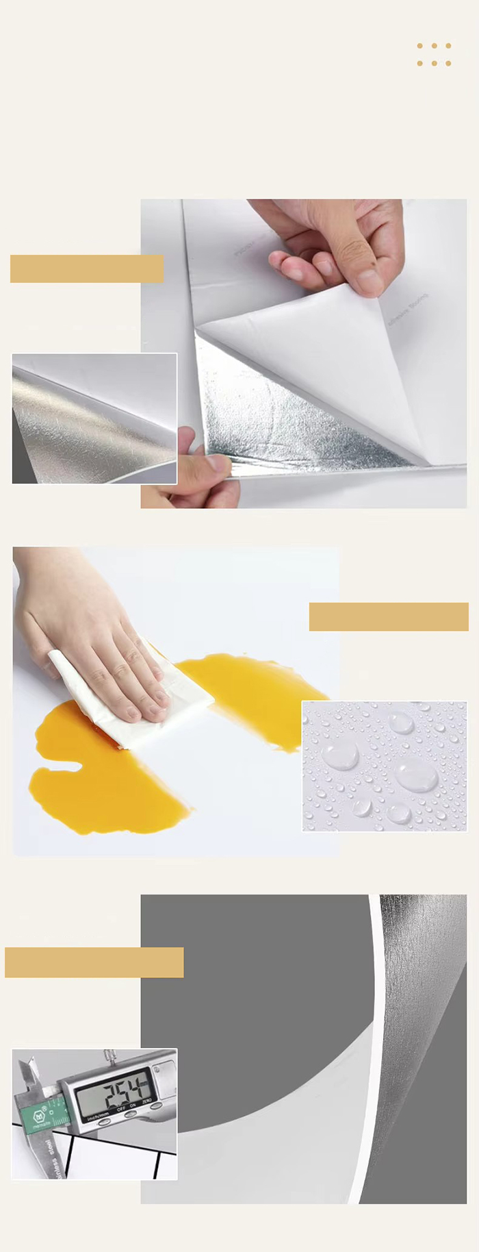 نصب آسان: دارای پشتی چسب است، نیازی به چسب اضافی نیست، فقط پشت چسب را جدا کنید تا چسبانده شود.