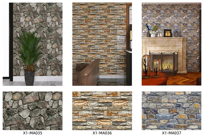تزیین دیوار تقلیدی از دانه های چوب، دانه های سنگی و جلوه های برس خورده فلزی مناسب برای اتاق نشیمن، اتاق خواب، اتاق کودک و غیره.