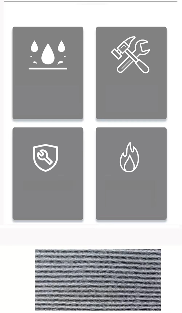 درجه A1 غیر قابل اشتعال (برخی مدل ها درجه B1 هستند)، میزان جذب آب ≤0.5٪، مناسب برای آب و هوای شدید.