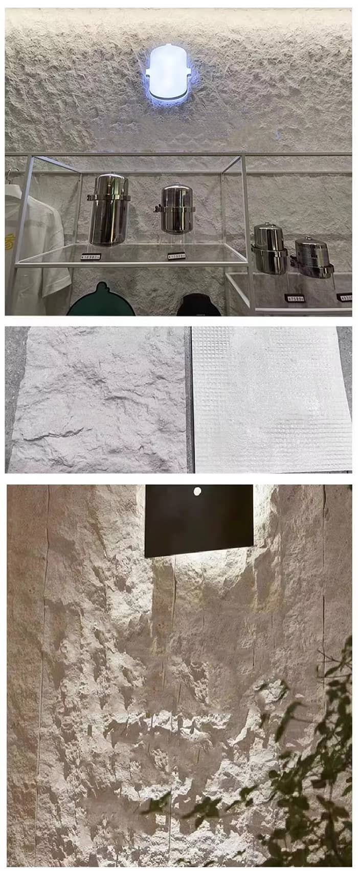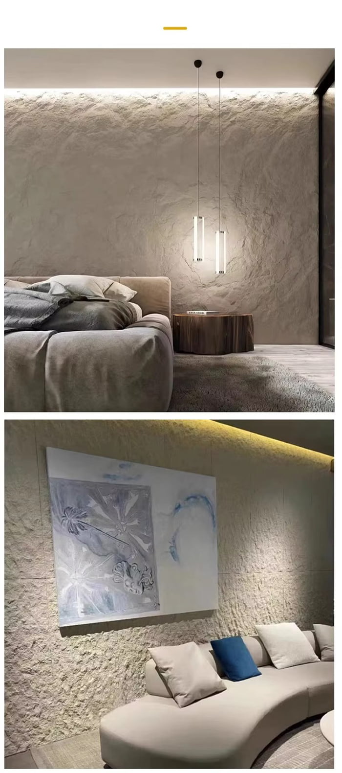 دیوارهای داخلی و خارجی: سنگ های بدلی و دانه های چوب بدلی بافت فضا را بهبود می بخشد و برای هتل ها، مراکز خرید، بیمارستان ها، مدارس و غیره مناسب است.